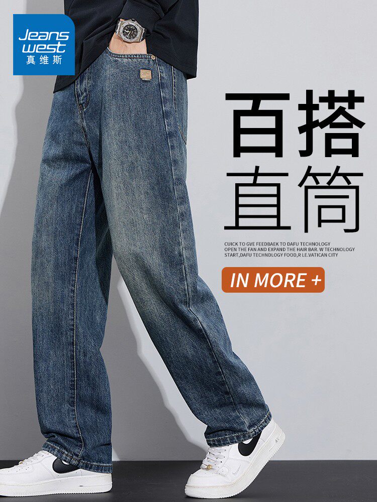 Jeans for Men, Spring/Summer 2026 New Vintage Washed Casual Pants, Loose Fit Straight Leg Trousers for Men