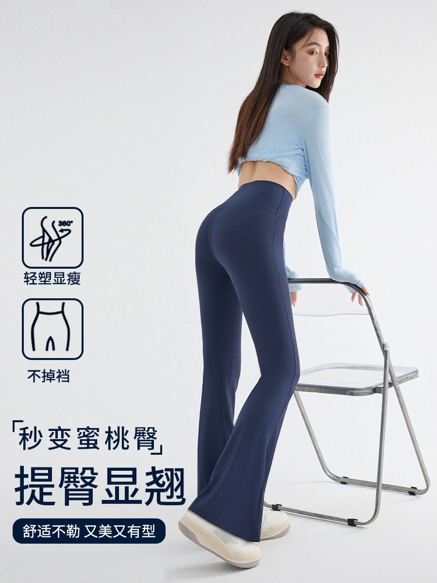 2025 Spring/Summer New Elastic Shark Pants for Women, High Waist, Hip-Lifting, Slimming, Suitable for Petite Figures, Flared Yoga Bootcut Pants
