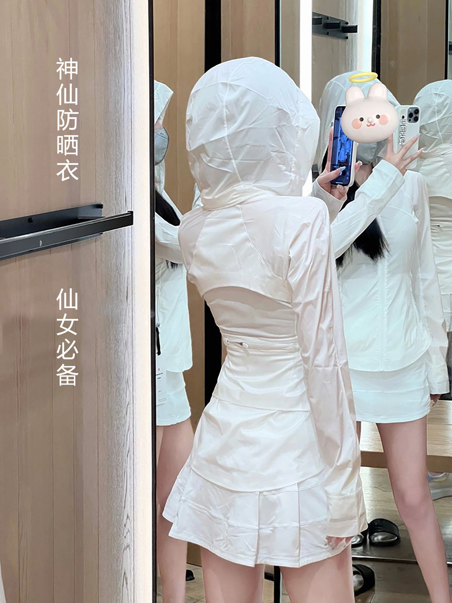 Angtai Iuiu Same Style Sun Protection Clothing, Breathable and Lightweight, Summer Outdoor Uv-Resistant, Waist-Cinching Sports Hooded Jacket for Women