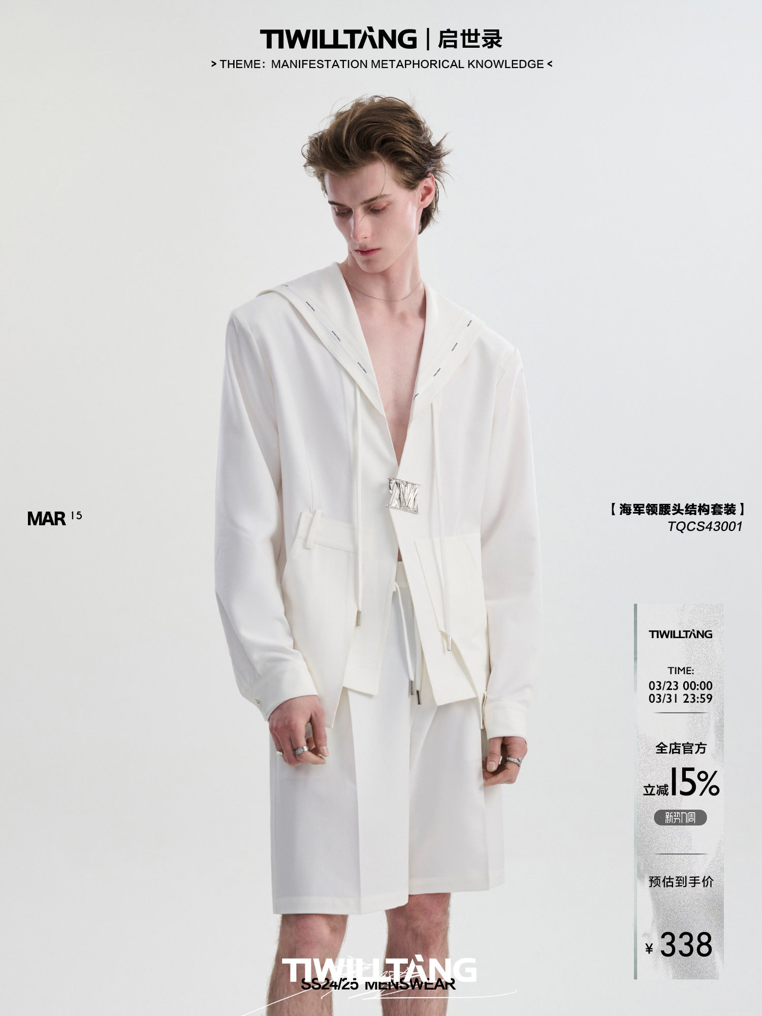 Qishilu Tiwilltang "Xiaochen Lingqi" Romantic Youth Navy Collar Long-Sleeved Shirt