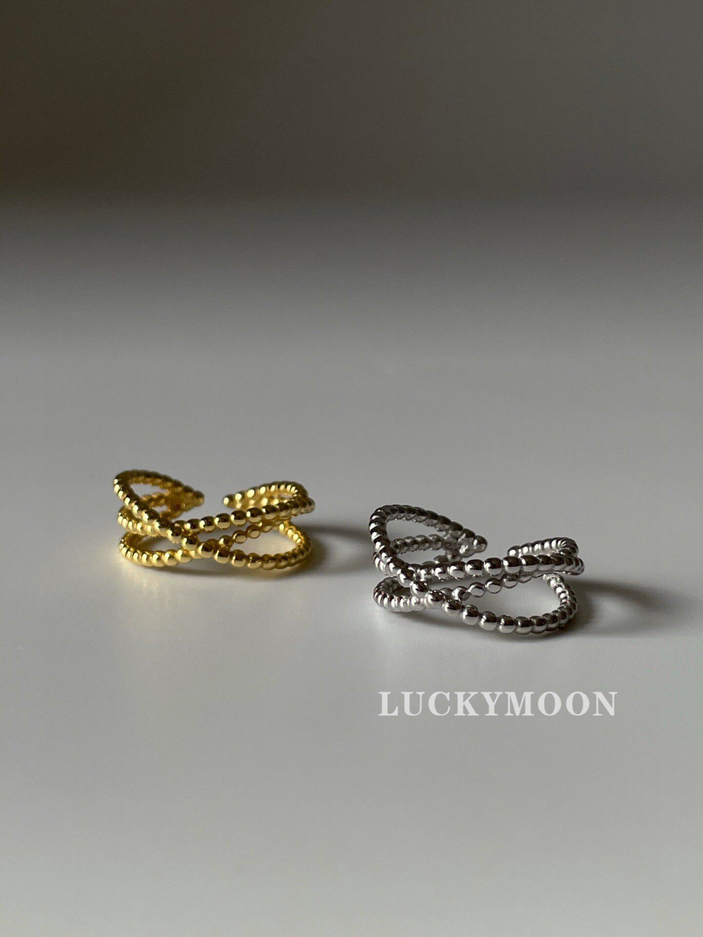 Luckymoon French Bead Line Cross Ring S925 All-Over Sterling Silver R116