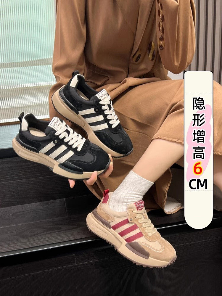 Hong Kong 2026 Internal Height-Increasing Genuine Leather Women's Sneakers, Small Sizes 32-33, Retro German Training Shoes, Casual Shoes, Versatile Dad Shoes
