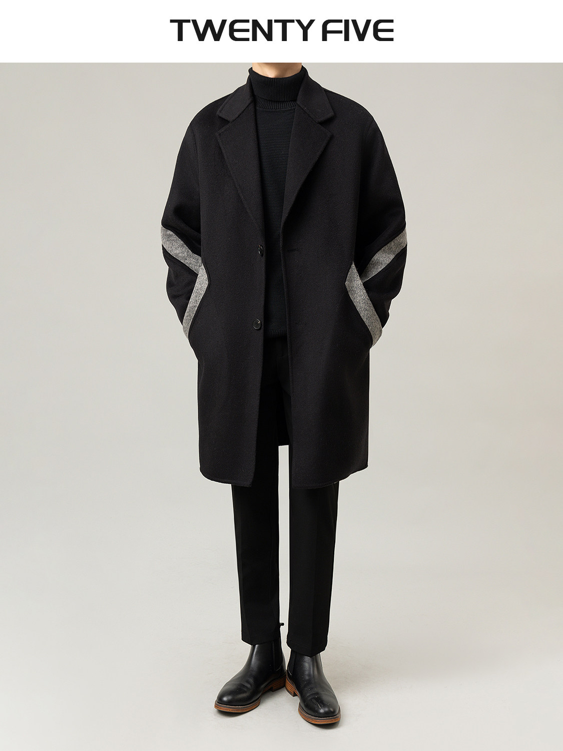 0122Stepll Classic Upgraded Black Wool Coat for Tall Women, Winter Waist-Cinching Elegant Long Woolen Coat
