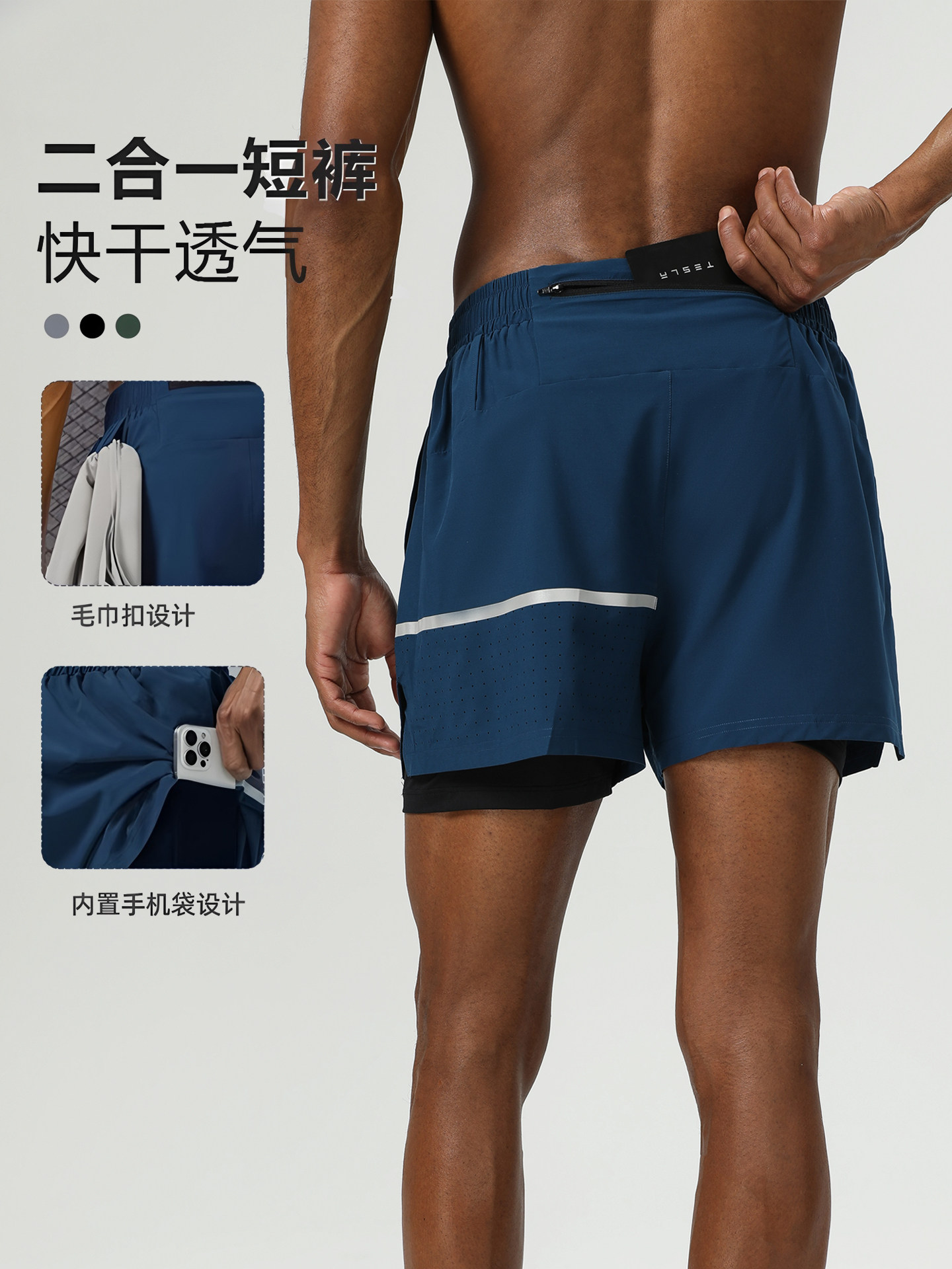 Men's Breathable Athletic Shorts, Three-Quarter Length, Marathon Fitness Shorts, Training Running Shorts with Back Pocket for Phone