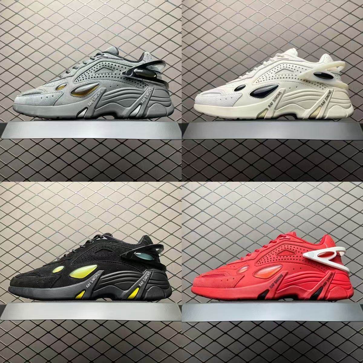 Raf Simons Cylon-21 Round-Toe Water Bubble Sneakers for Men and Women in Asphalt Black and Red, Sports Casual Dad Shoes