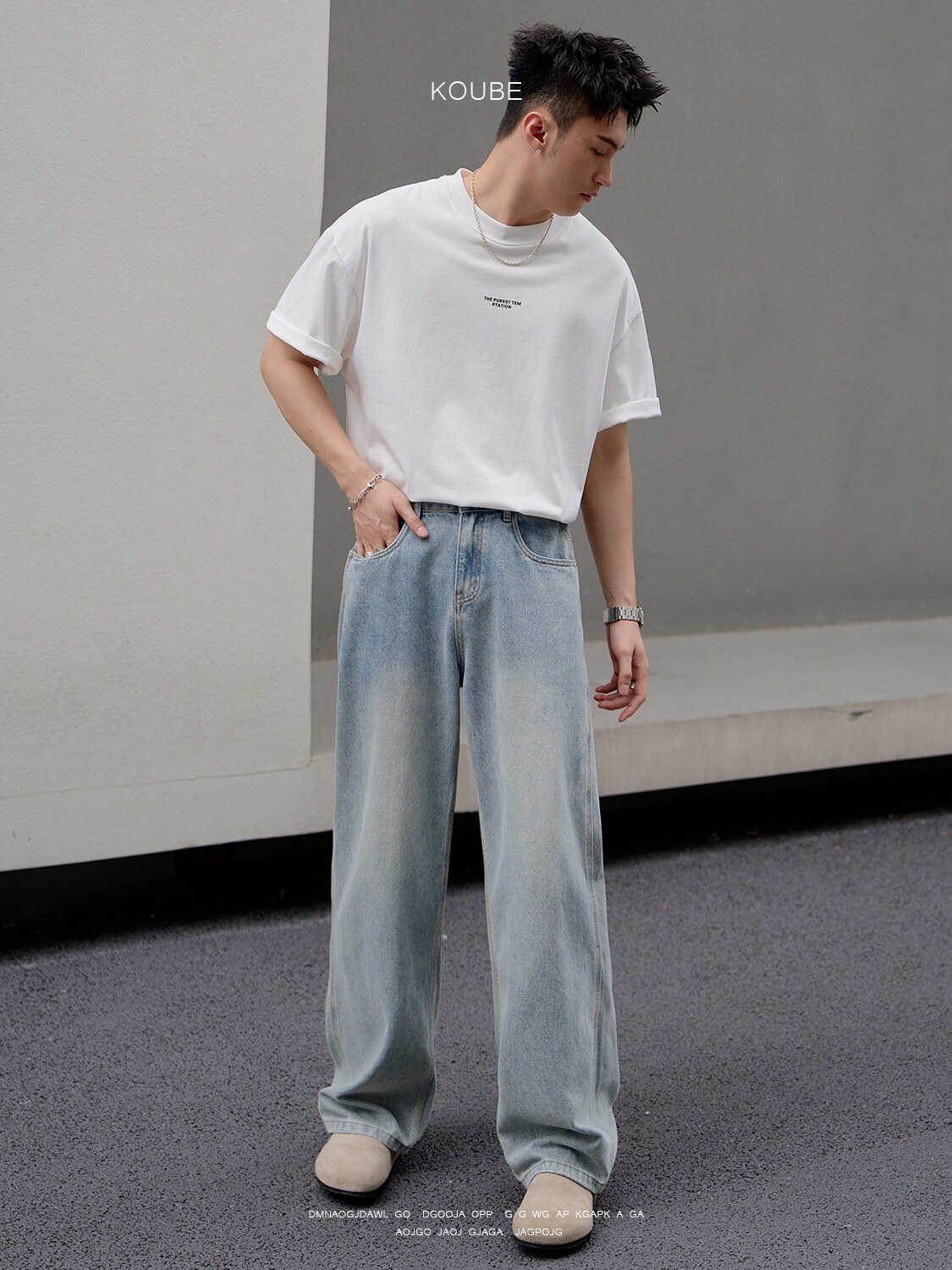 Yule LAOSHU American-Style Straight-Leg Flared Jeans for Men, Washed and Distressed, Loose Fit, Cleanfit, Vintage Blue Pants