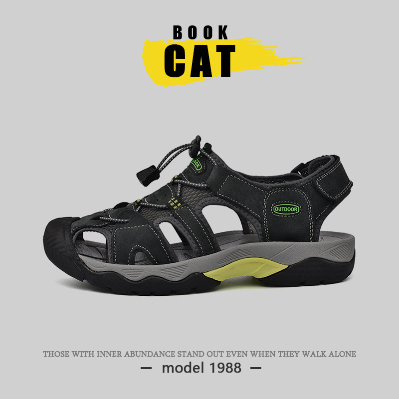 [Outdoor Genuine Leather] American-Style Bookcat New Summer Closed-Toe Sports Sandals for Men, Non-Slip Water Shoes for Beach Use