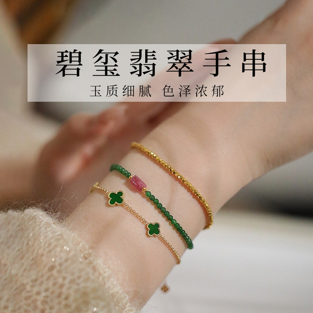 Natural A-Grade Jade Bracelet, Spicy Green Small Bead Bracelet, Tourmaline Jade, New Chinese Style National Style Gift for Women