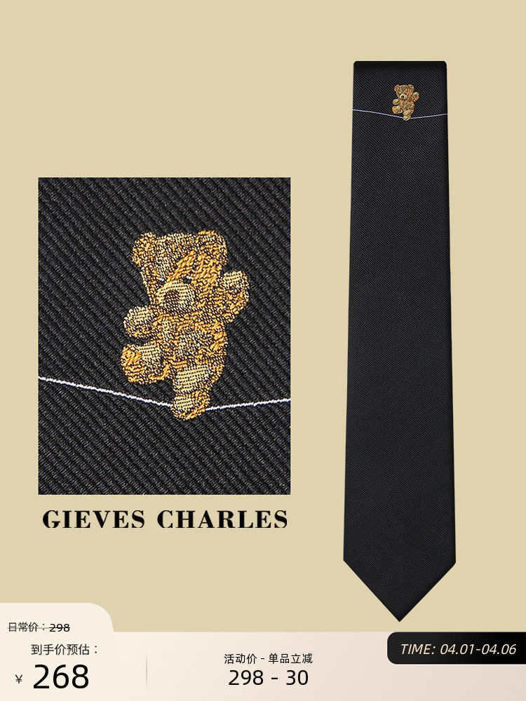 Gieves Charles Italian Style Silk Bear Embroider Limited Edition Men's Tie Men's Casual Gift Box
