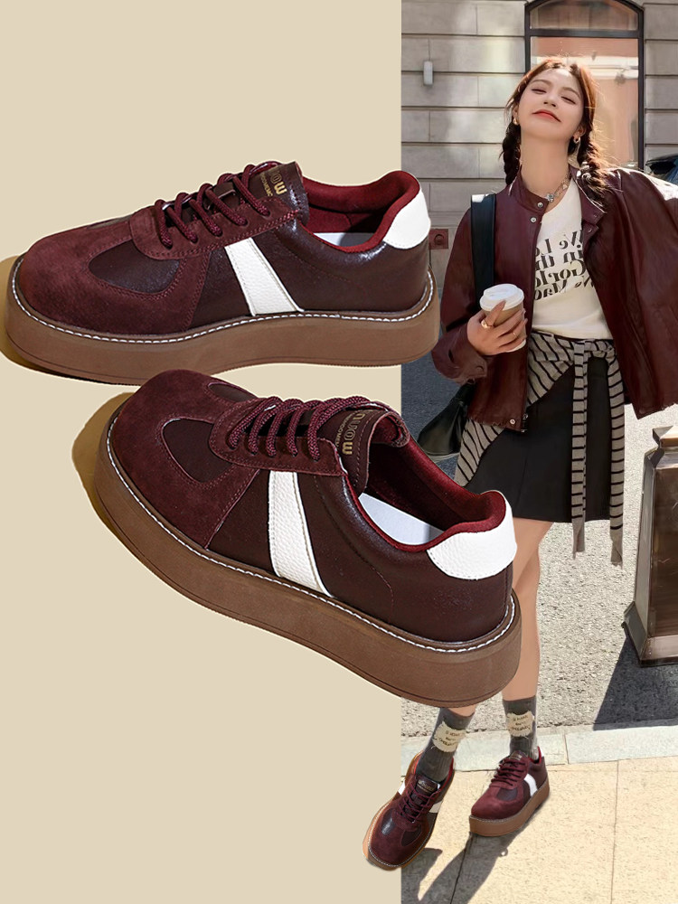 Hong Kong 2026 Spring and Autumn New Genuine Leather Thick-Soled German Training Shoes for Women, Retro Breathable Versatile Casual Sneakers, Ancora Red