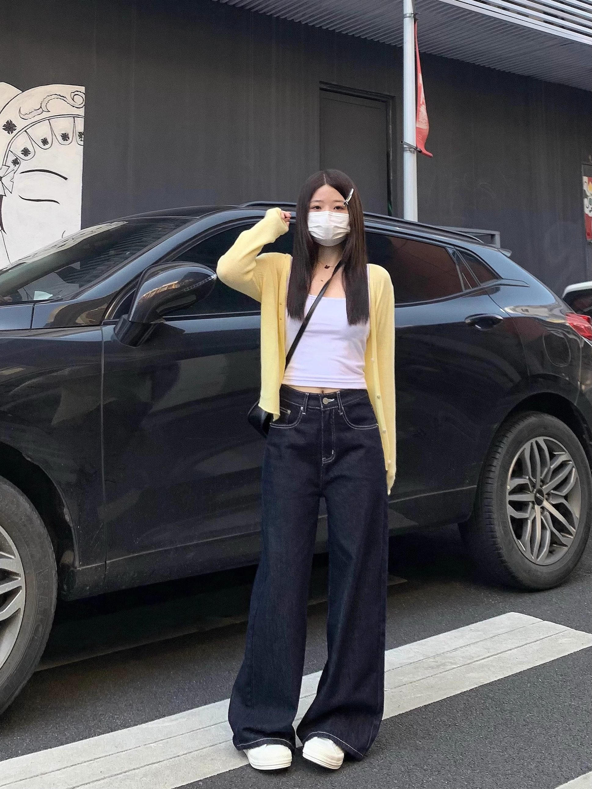 Chun Ge's Dark Blue Straight-Leg Jeans for Women, 2026 Spring New Style, High-Waisted, Loose, Slimming, Drapey Wide-Leg Pants
