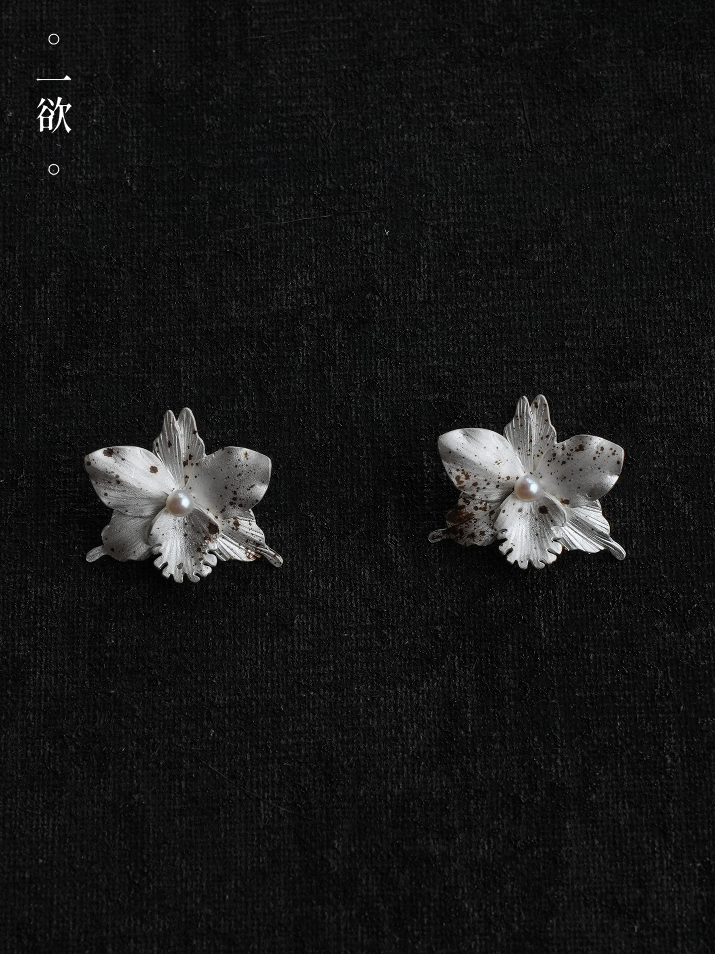 Yiyu Yiyu Lan Die Series S925 Sterling Silver Earrings Original Niche Design Handmade Silver Jewelry Burnt White Ink Splatter