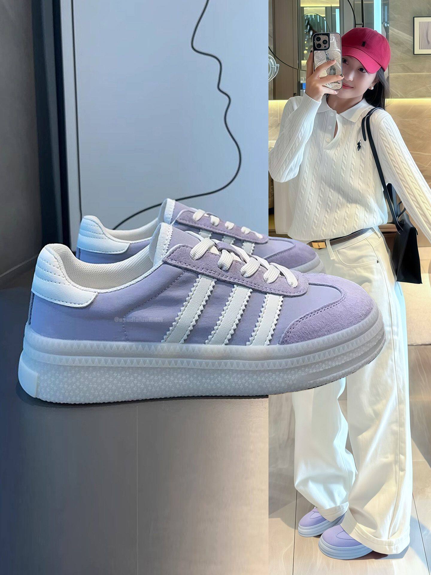 Hong Kong Genuine Leather Thick-Soled German Training Shoes for Women 2026 Summer New Fashion Color-Blocking Lace-Up Sneakers Versatile Sports Casual Shoes