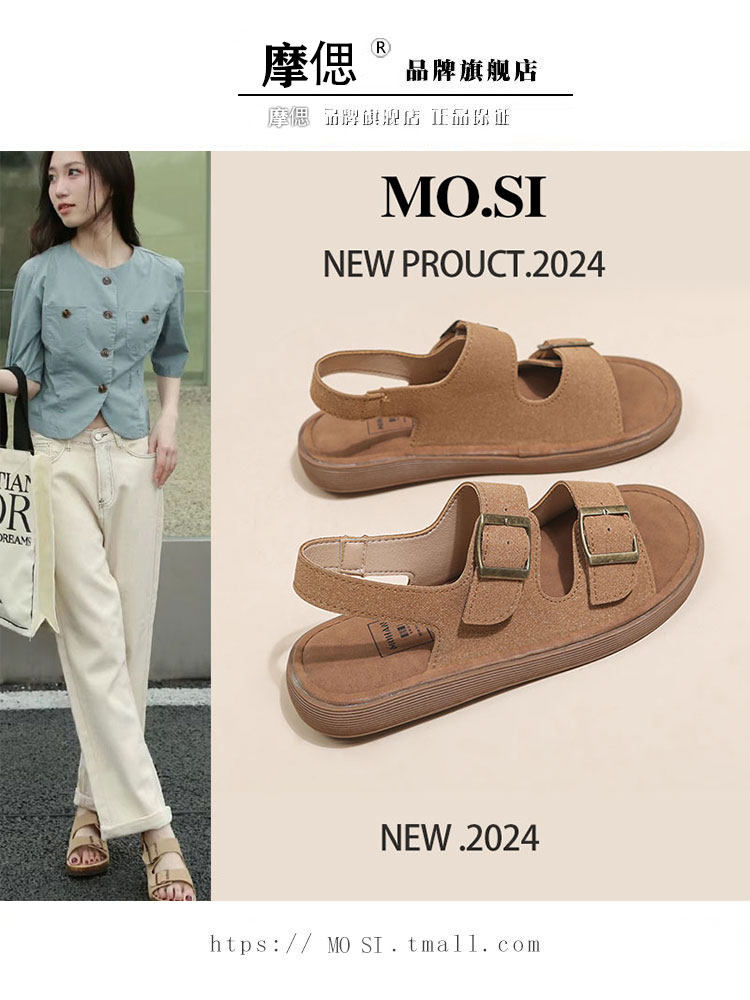 Genuine Leather Birkenstock Sandals for Women, 2026 New Summer Style, Suitable for Pairing with Dresses, Soft Sole, Flat Sole, Suitable for Pregnant Women, One-Strap Beach Roman Sandals