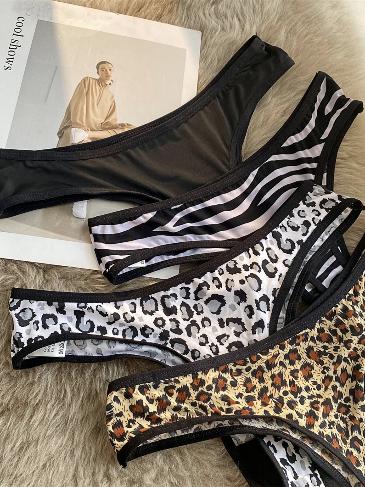 New European and American Style Sexy Women's Underwear, Hollow Leopard Print Zebra Breathable Thong, Elastic Low-Waist Seamless T-Pants