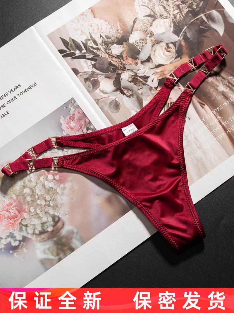 European and American Style Sexy Thong Panties for Women, Ice Silk Burgundy Seamless Underwear, French Metal Pure Desire Plus Size Sports Fitness t