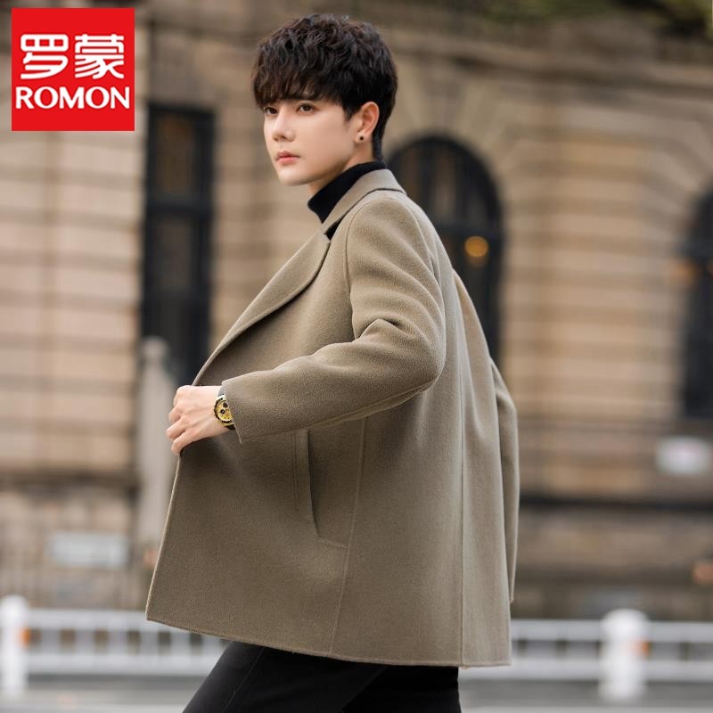 Romon Double-Sided Woolen Coat for Men, Korean Style Cashmere Suit Woolen Jacket, Thickened Trench Coat for Men in Spring and Autumn