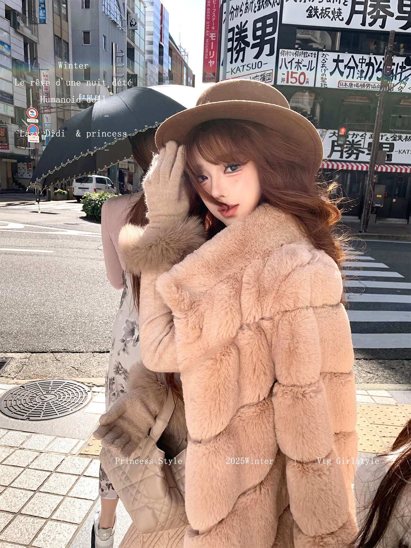 Lazy Didi Delicate Bunny 1500g Heavy Craftsmanship Eco-Friendly Fur Realistic Faux Fur Coat for Warmth