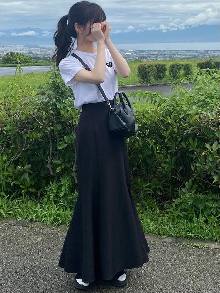Grl Japanese Style Saito Ena Versatile All-Season Elastic High-Waisted Slimming Back Slit Solid Color Fishtail Skirt Dk988