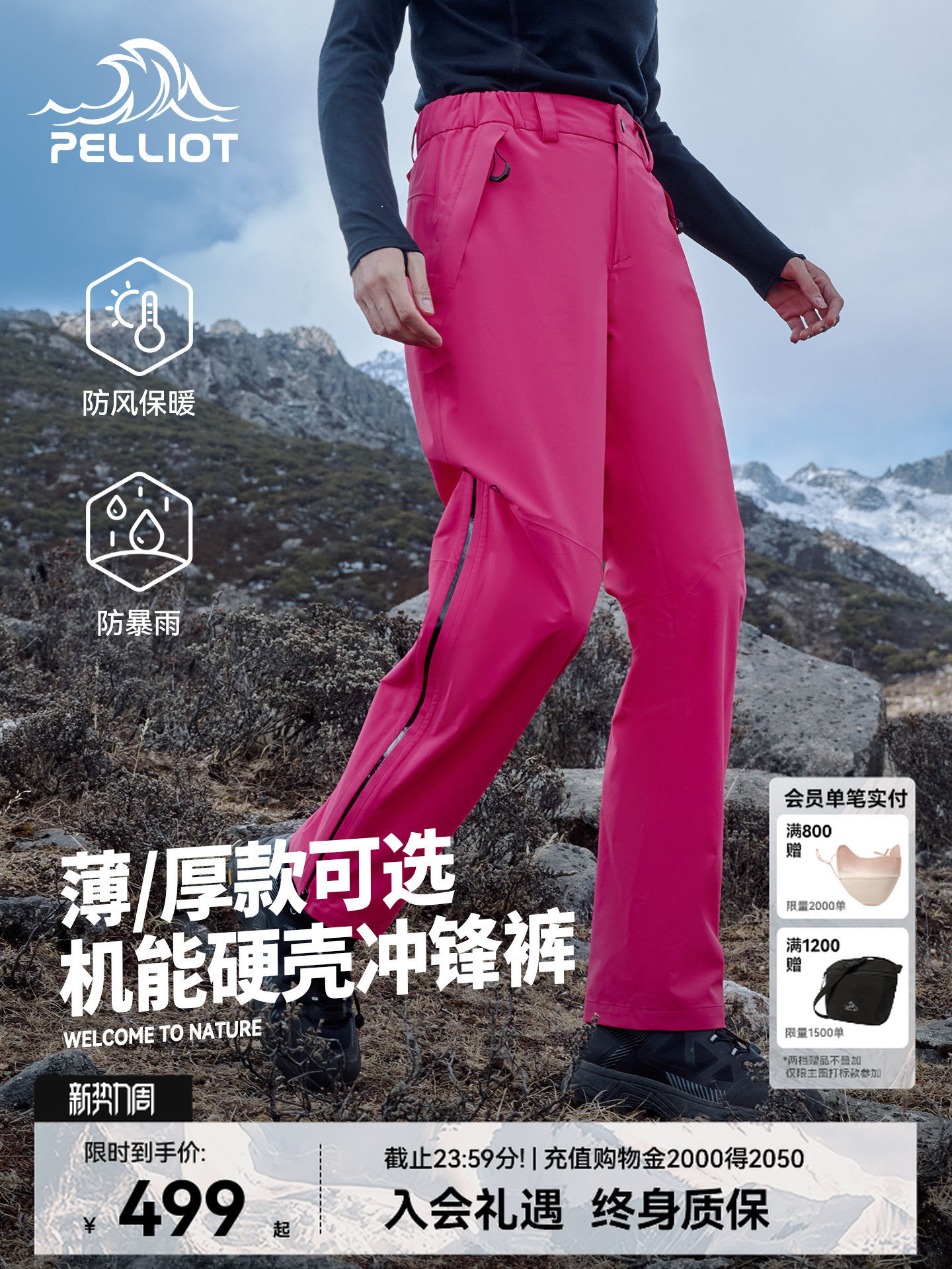 【New Color Release】Pelliot [Mountain Shell] Outdoor Digital Rose Pink Hardshell Hiking Pants for Women, Rainproof Mountaineering Pants