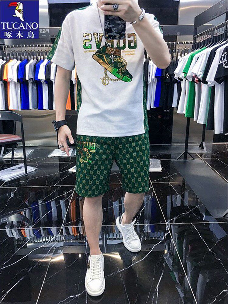 Spring New Pilot Denim Suit for Men, Loose Casual Baseball Collar Long-Sleeve Cardigan, Wide-Leg Pants Two-Piece Set, Trendy