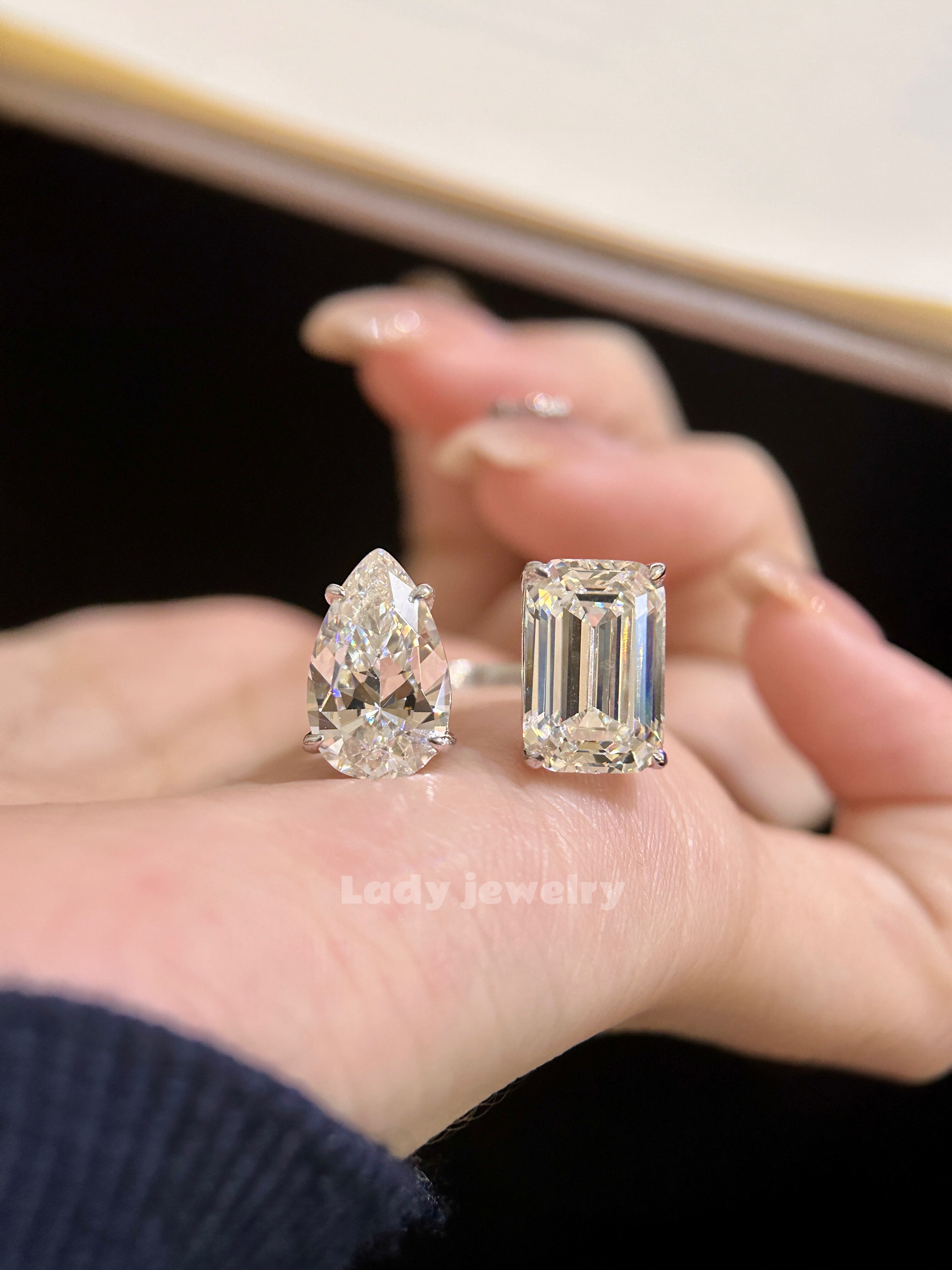 Ledi [Double Stone Pear/Emerald Cut] Popular in Europe and America, S925 Silver Gold-Plated Double Stone Open Ring