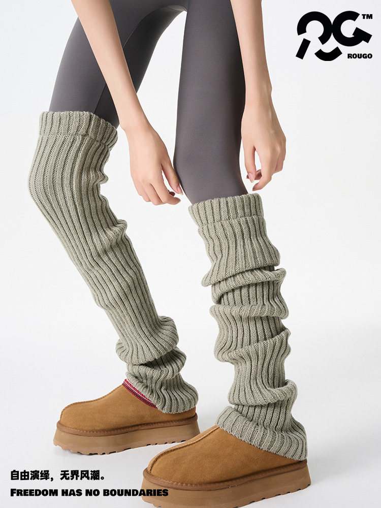 Rougo 70cm Long Tube Knitted Socks Over-The-Knee Socks for Women Autumn and Winter Knee Pads Leg Warmers Y2K Warm
