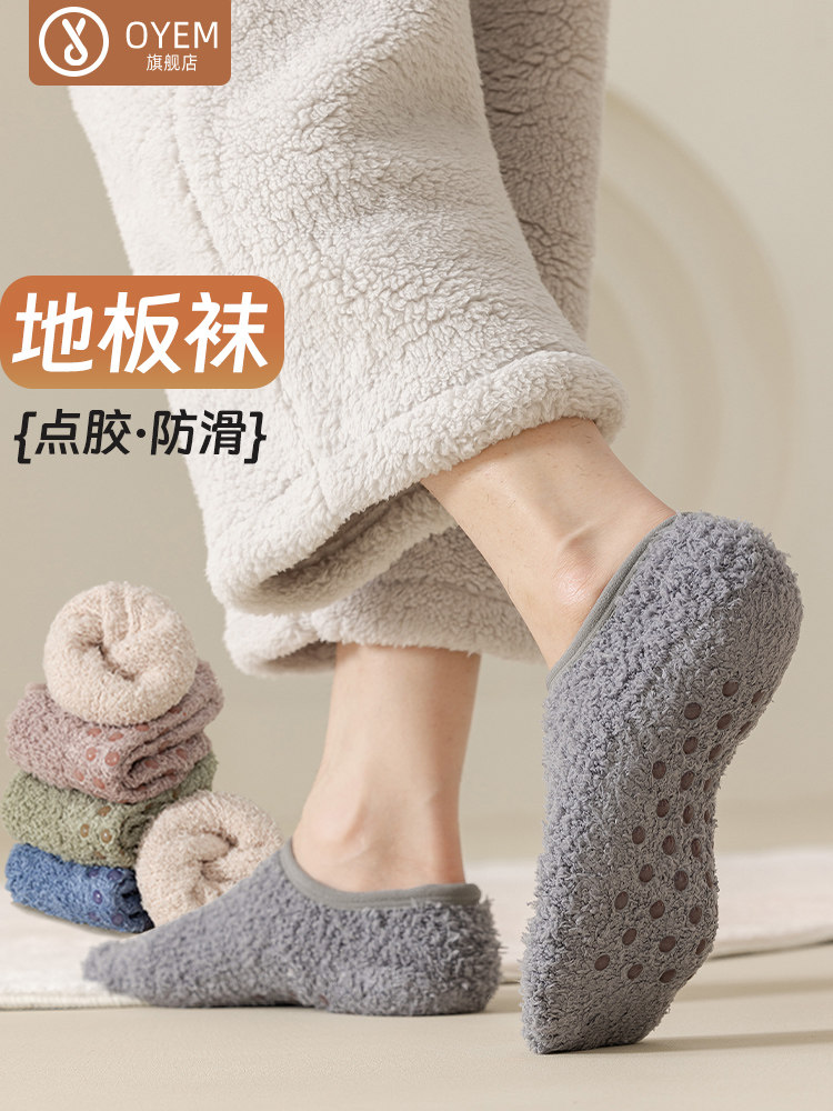Men's Floor Socks, Short Socks, Fleece-Lined and Thickened for Autumn and Winter, Plush Home Sleep Socks, Silicone Non-Slip Warm Sock Covers