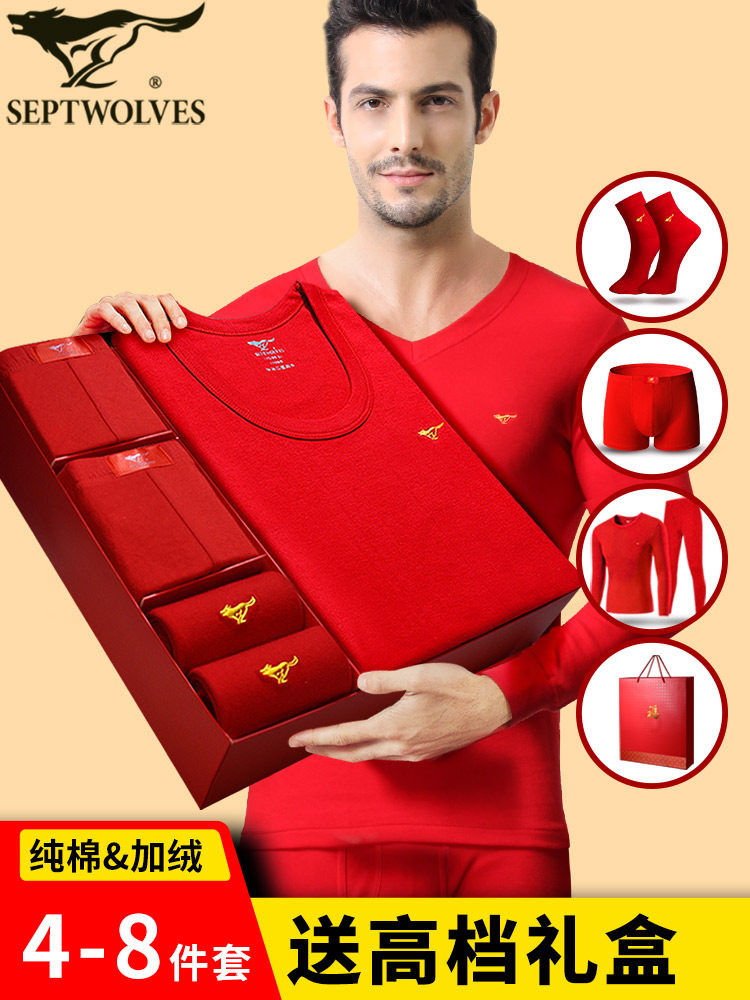 Septwolves Year of the Horse Zodiac Year Men's Underwear Clothing Gift 2026 Year of the Horse Dad's Autumn Clothes Red Underwear Set