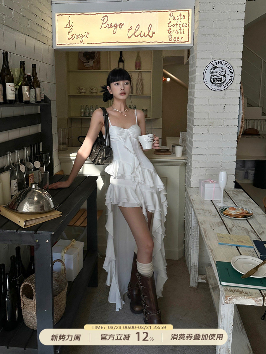 Venuie White Asymmetrical Satin Bud Dress Sanya Southeast Asia Island Vacation Beach Dress Spaghetti Strap Dress