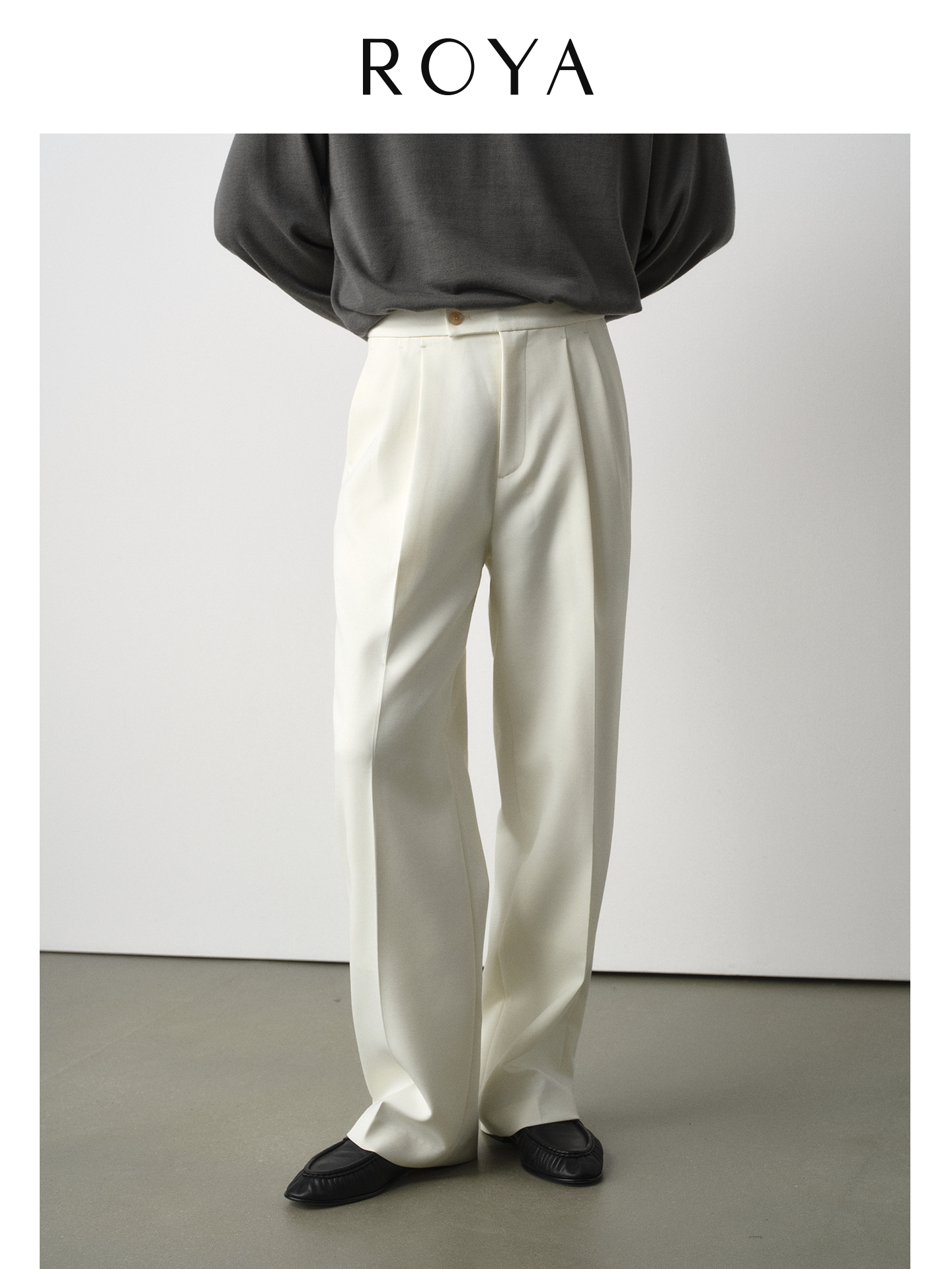 Roya | Imported Acetate Wool Trousers with Semi-Elastic Waist, Straight-Leg, Slightly Wide, Relaxed Fit, Casual Suit Pants.