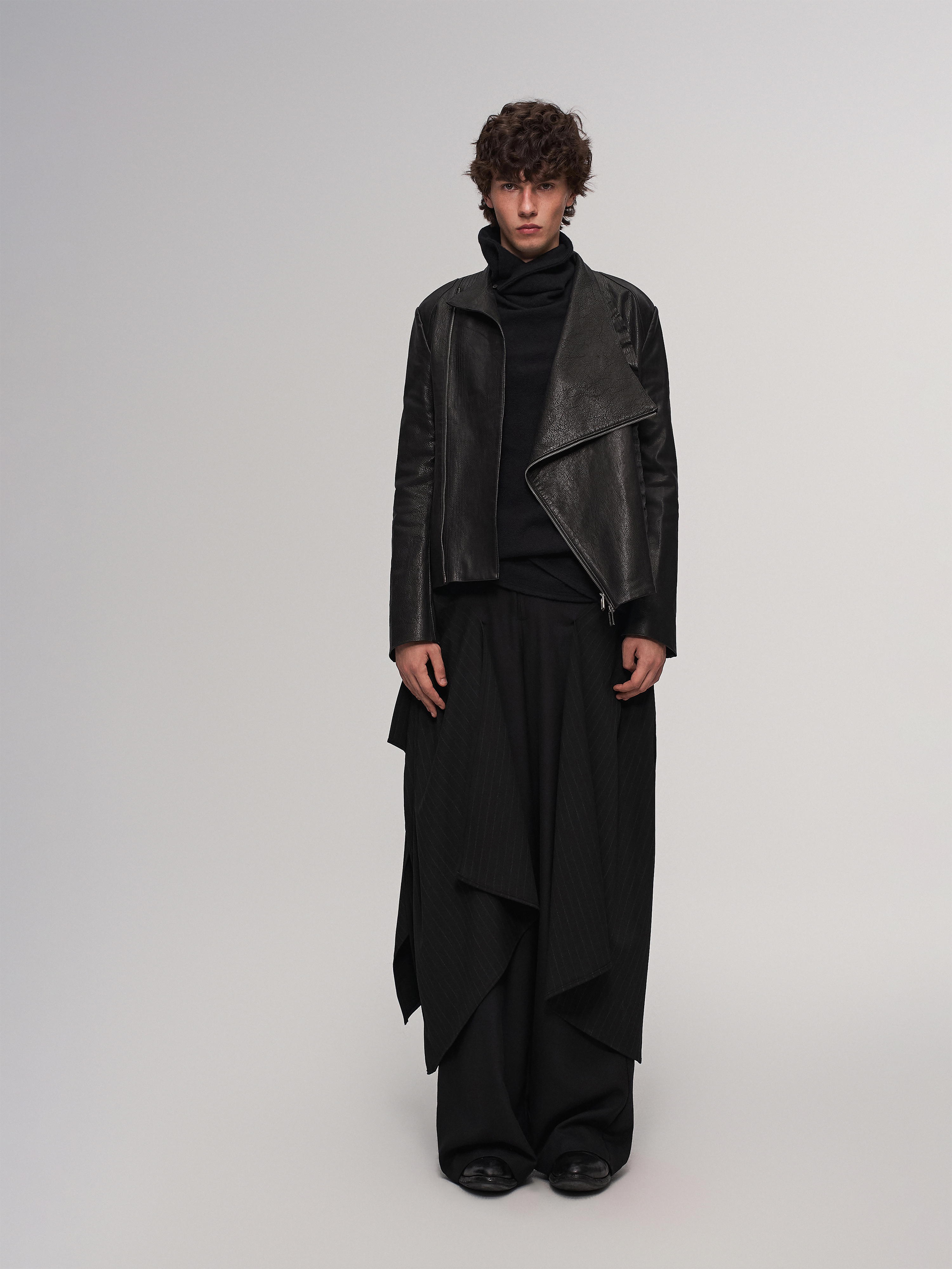 "Ilnya" Black Lace Jacket, Washed Horsehide Lace Leather Jacket
