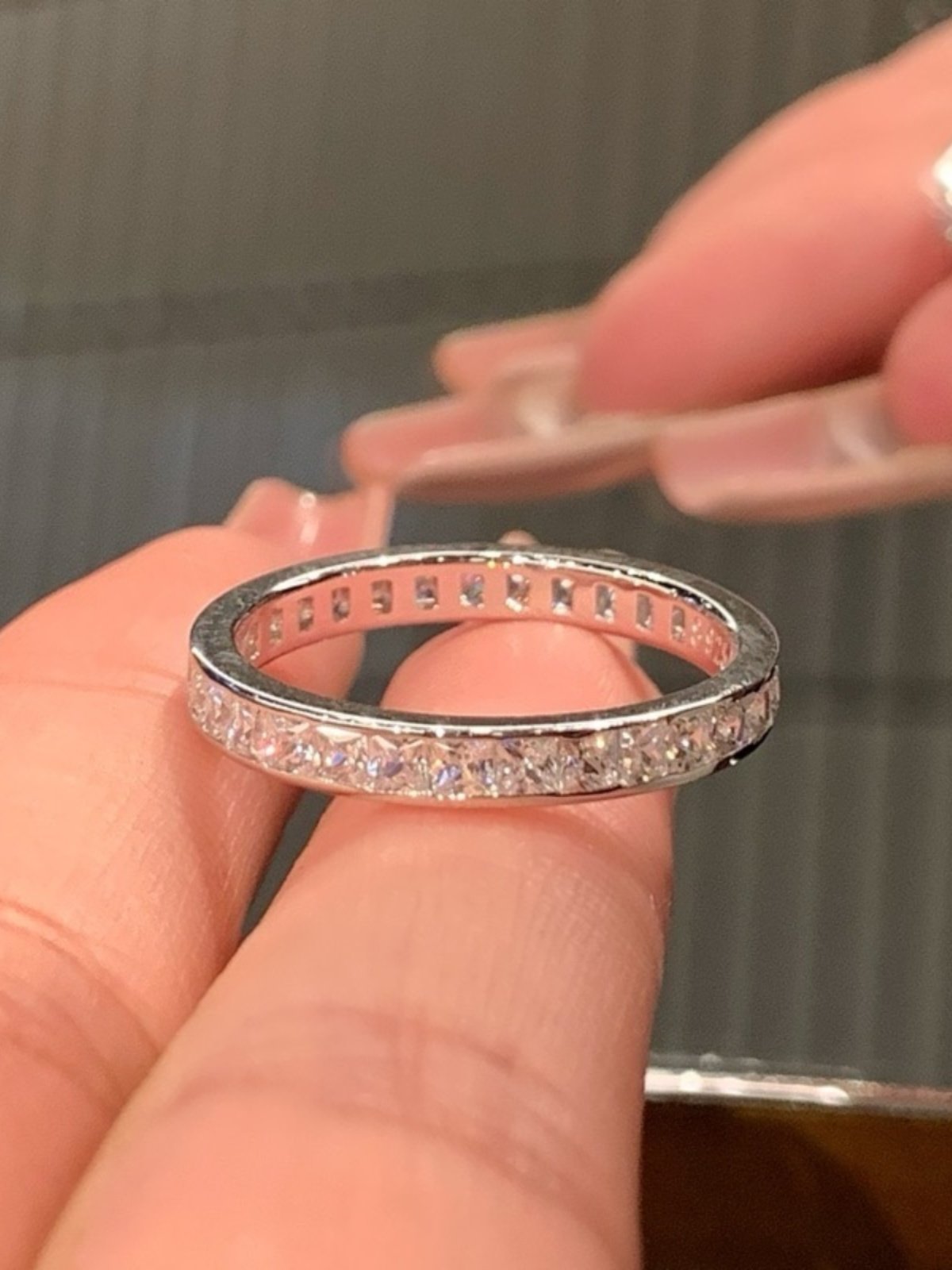 Lady's High-End Series S925 Silver [Emerald Square Diamond] Cut Full Diamond Inlaid Row Ring