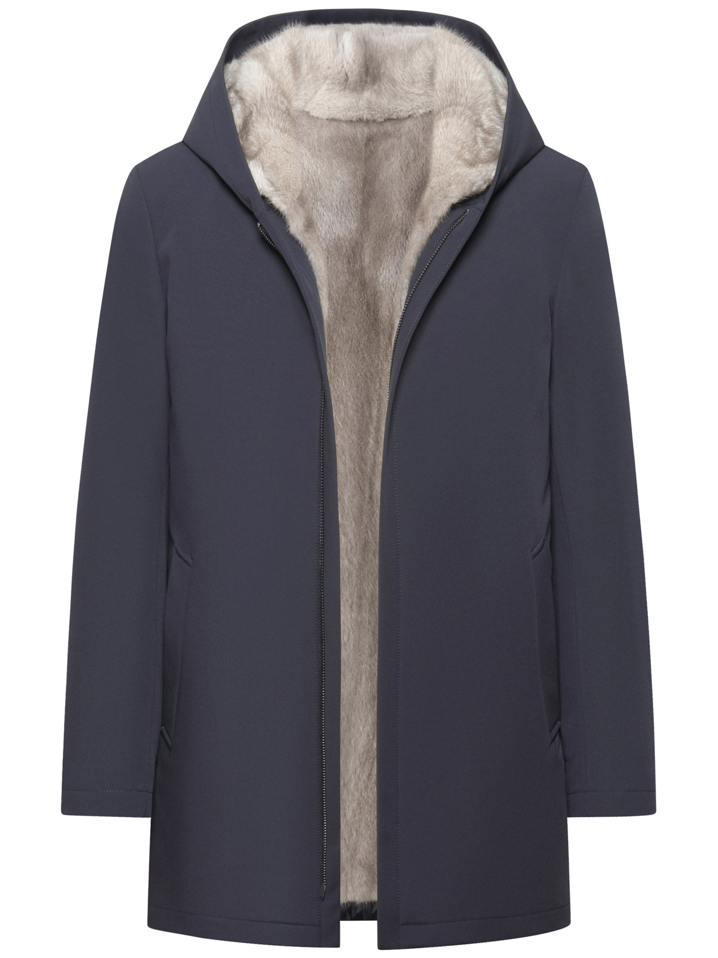 2025 New Parka Men's Mink Fur Lining Whole Mink Fur Hooded Parka Thickened Fur Integrated Coat