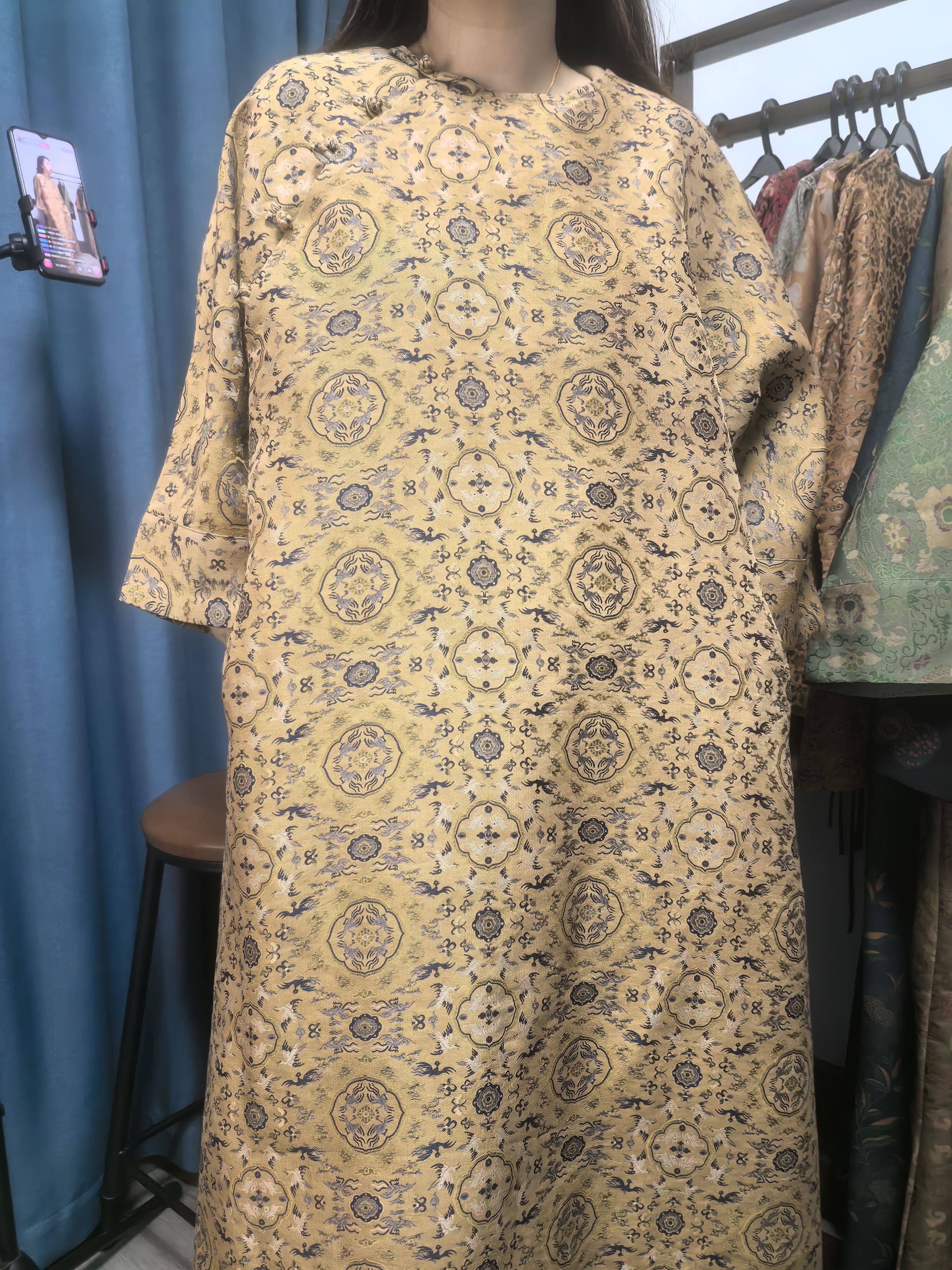 Silk Xiangyunsha Old Song Brocade Buttoned Dress 1-31 Deer and Crane
