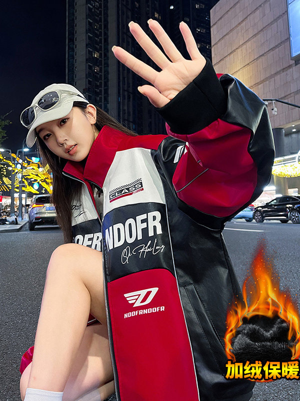 Men's and Women's Cool Biker Racing Suits, Motorcycle Riding Jackets, Autumn and Winter Windproof, Fleece-Lined, Thickened Leather Jackets