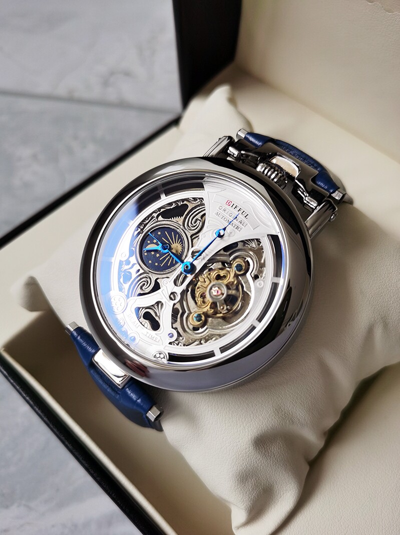 Foreign Trade Stirling Pilot Style Personalized Fashion Large Dial Men's Mechanical Watch Fully Automatic Skeleton Star Moon Phase Watch
