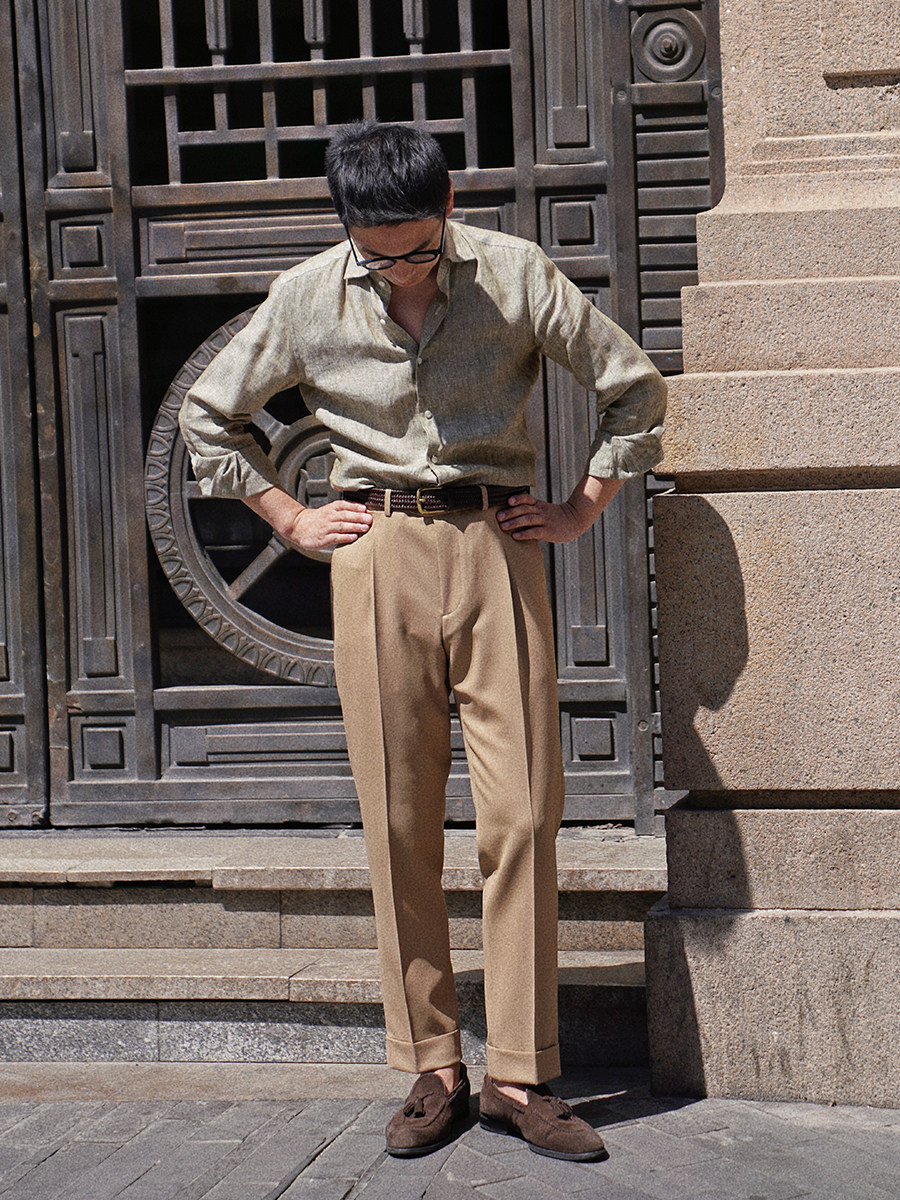 Cm Naples Queen Khaki Waterproof Spring/Summer Trousers with Single Pleat and Belt Loop, Mid-High Waist Long Pants 217