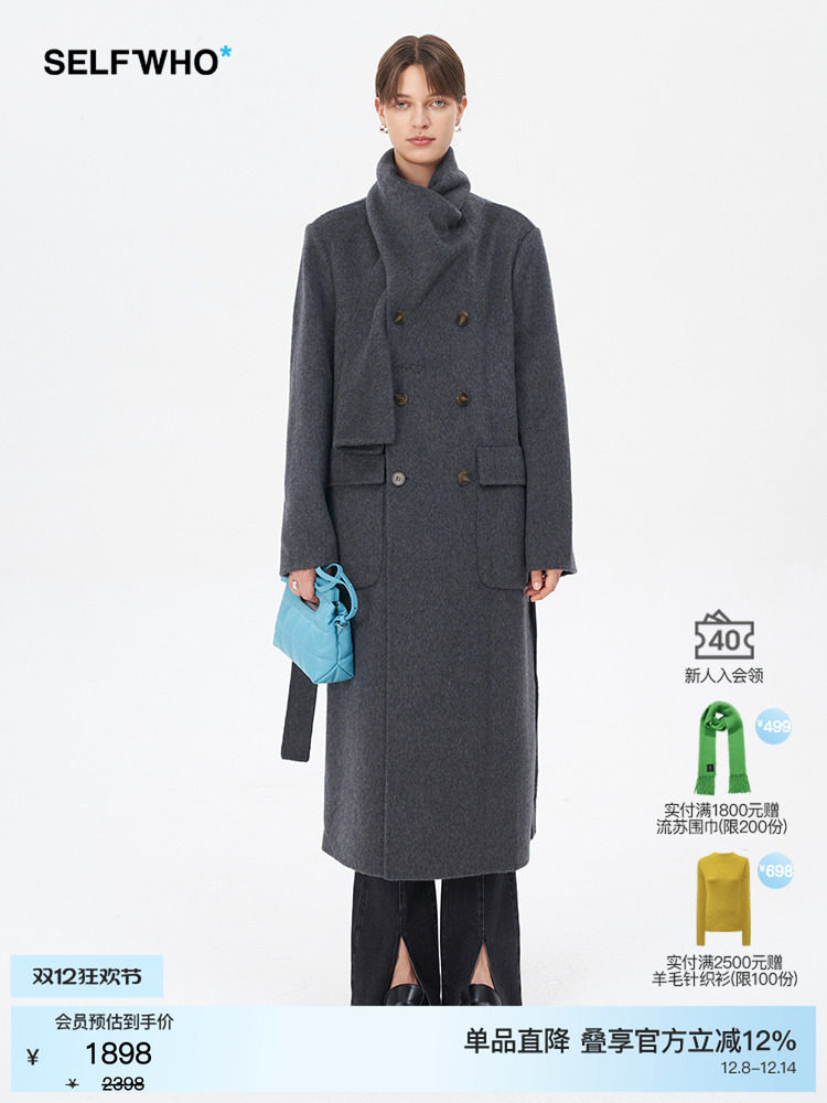 Selfwho Camel Wool Gray Australian Imported Wool Double-Sided Woolen Coat Women's Winter New Long Woolen Coat