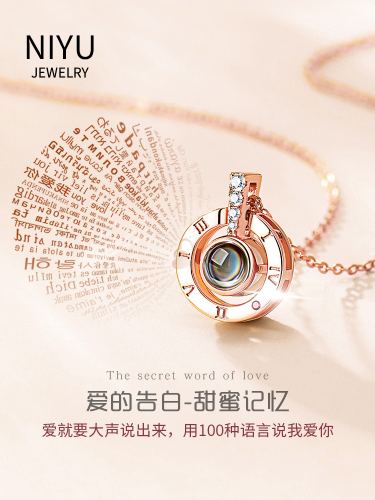 Niyu Love Memory Necklace Custom Projection 100 Ways to Say I Love You National Day Gift for Girlfriend Wife Gift