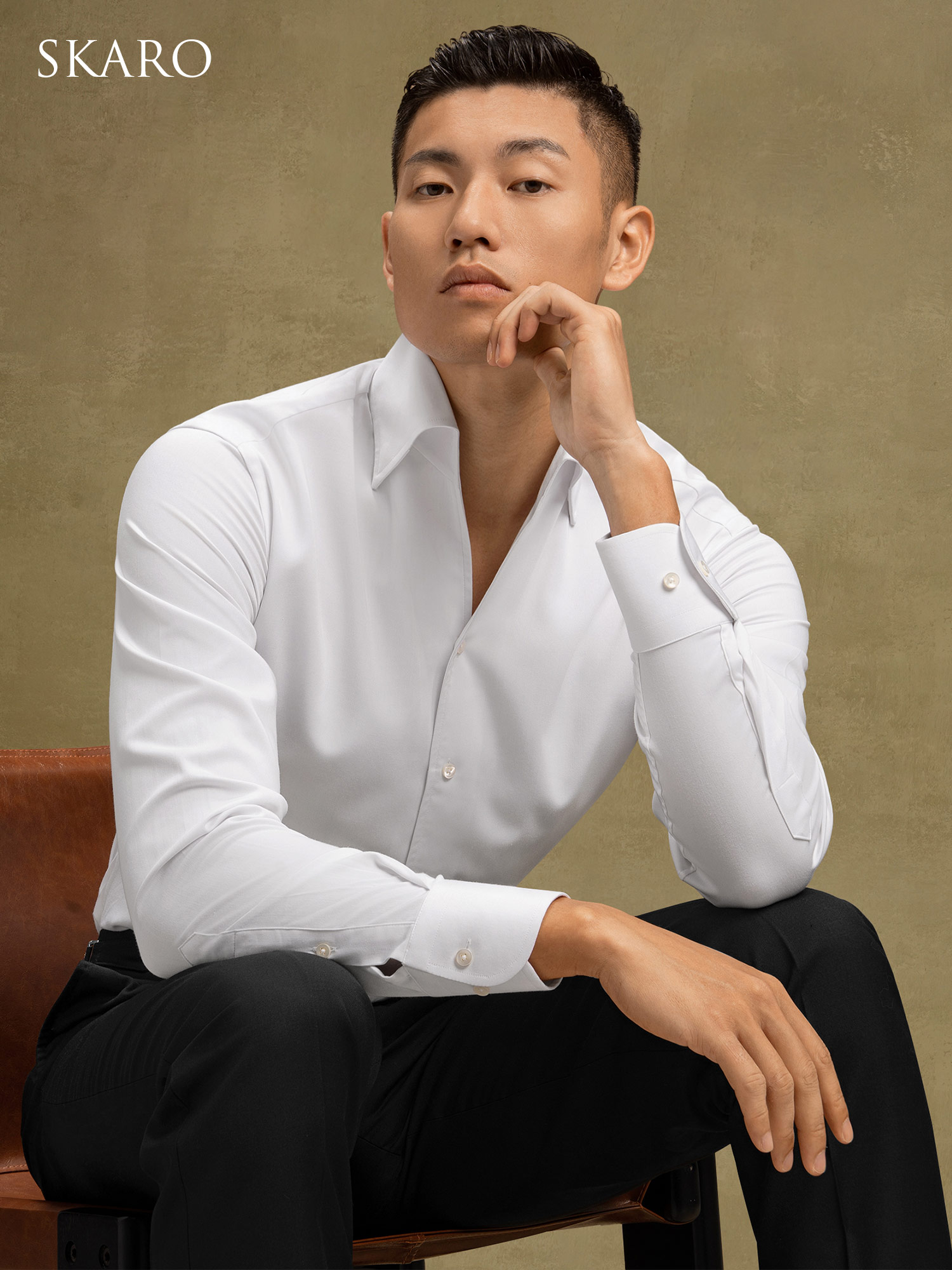 [Same Style as Lei Zong, No Ironing, Anti-Wrinkle] Skaro One-Collar Shirt, Men's Business Formal Long-Sleeved White Shirt
