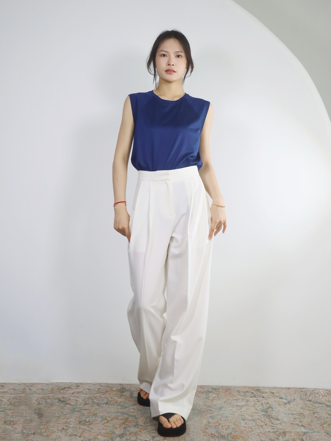 Belgian Niche Fashion Essential: Old Money Style Casual Versatile Loose Wide-Leg Straight Long White Pants