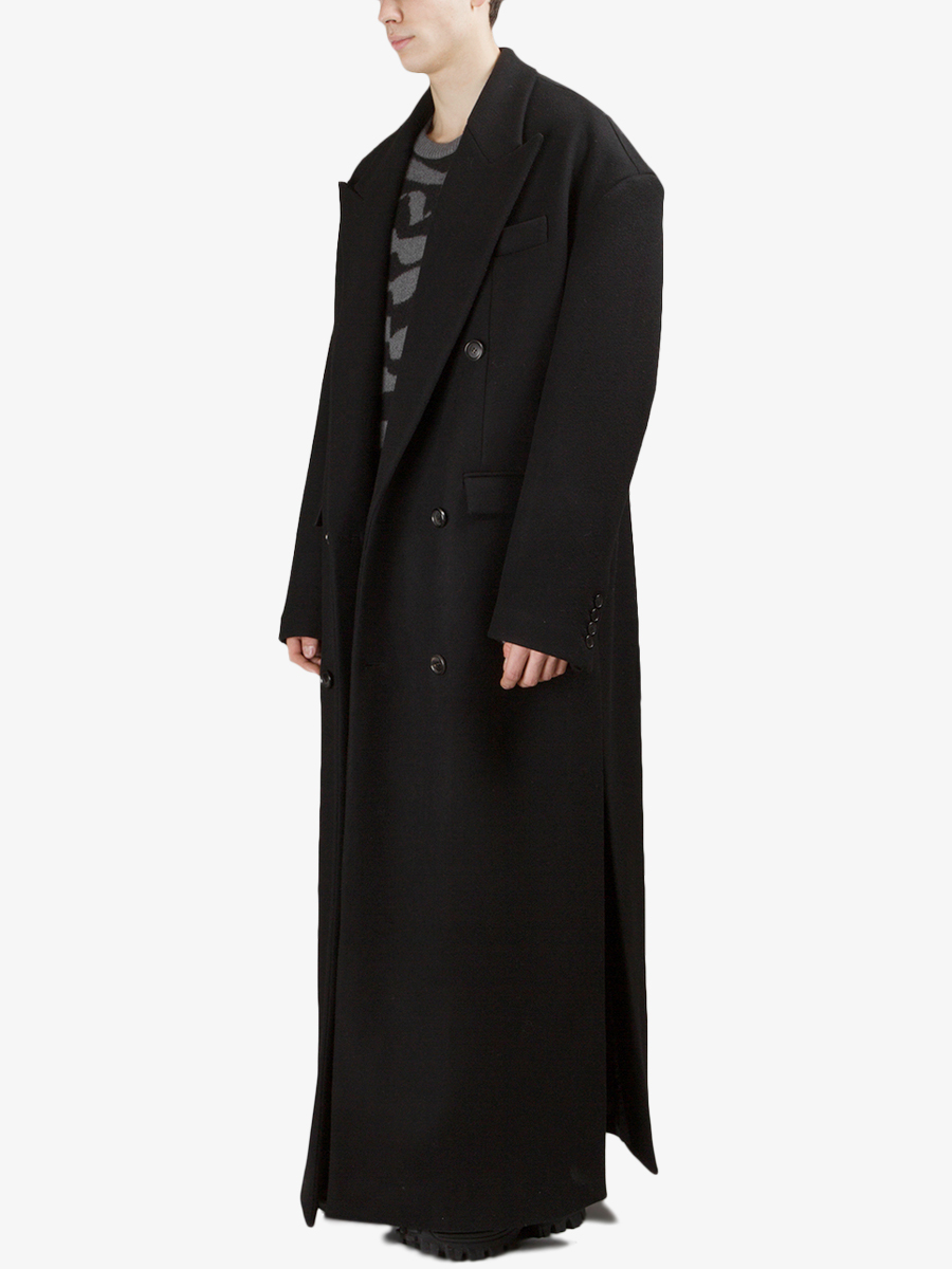 Gaostudios Extra-Long Loose Woolen Coat for Men with Dropped Shoulders, Side Slits, Autumn and Winter Classic Chester Style