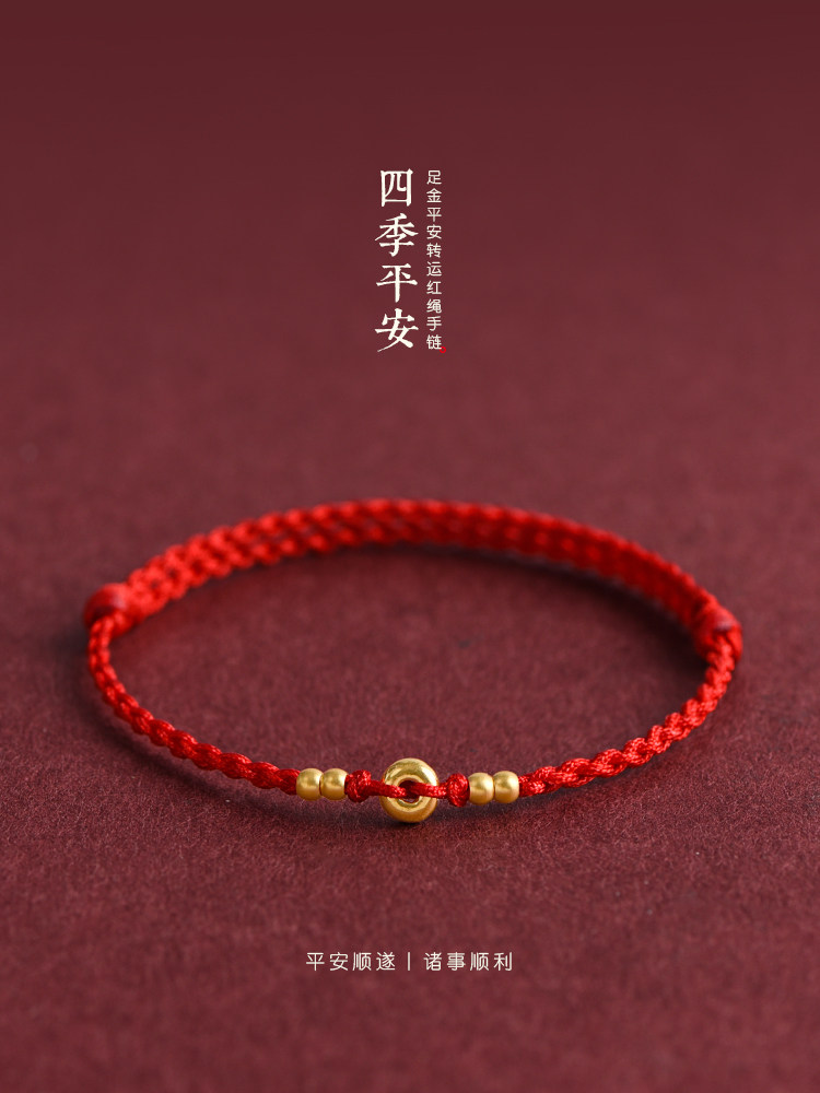 2025 New Gold Peace Pendant Bracelet for Men and Women, 999 Pure Gold Fortune Bead, Birth Year Woven Red String Bracelet