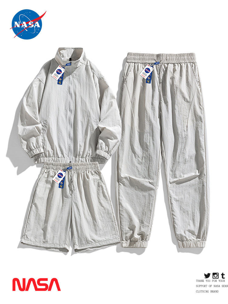 Nasa Co-Branded Mountain-Style Outdoor Quick-Drying Sports Suit for Men and Women, Summer Couple Casual Sun Protection Clothing, Ice Silk Three-Piece Set