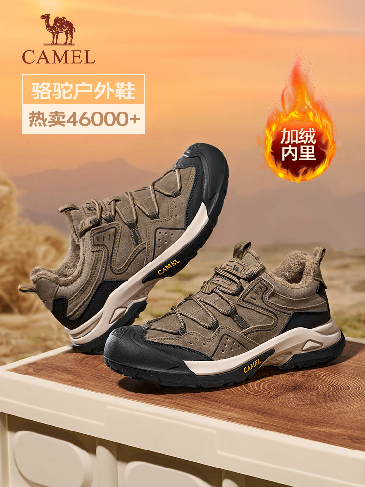 Camel Mountain Climbing Shoes Winter Men's New Cotton Shoes Outdoor Hiking Shoes Casual Fleece-Lined Sports Shoes for Men
