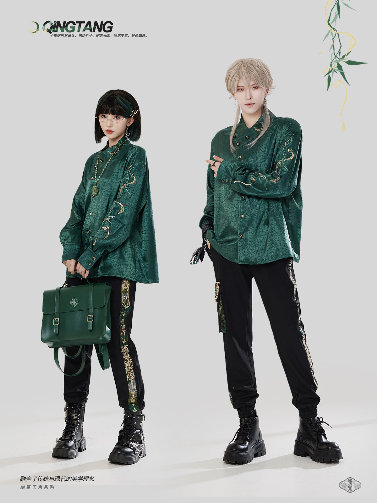Qingtang Original - Youhuang Yujing - Snake Pattern Embroidery Chinese Style Long Sleeve Shirt High Waist Slimming Casual Couple Work Pants