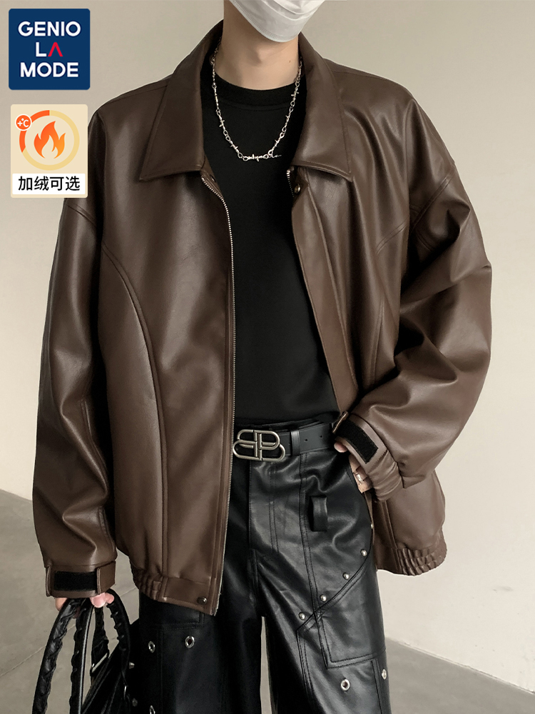 Genio Lamode Leather Jacket for Men 2025 Spring and Autumn New American Style Biker Trendy Clothing Cool Top Leather Jacket
