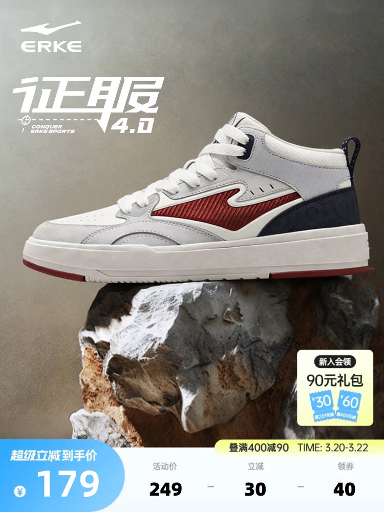 Conquer Hongxing Erke Sneakers, Spring New Leather Shoes, Student Thick-Soled Men's Shoes, High-Top Casual Shoes