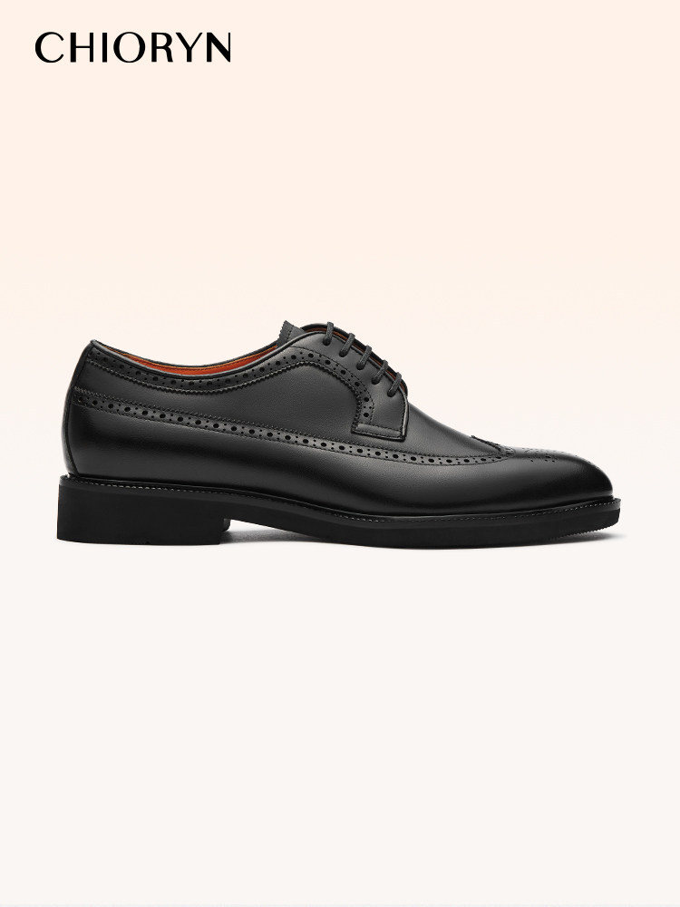 Sachi Men's Shoes 2026 Spring New Fashion Formal Business Derby Shoes with Textured Surface and Triple Panel Design, Fleece-Lined Leather Shoes for Men